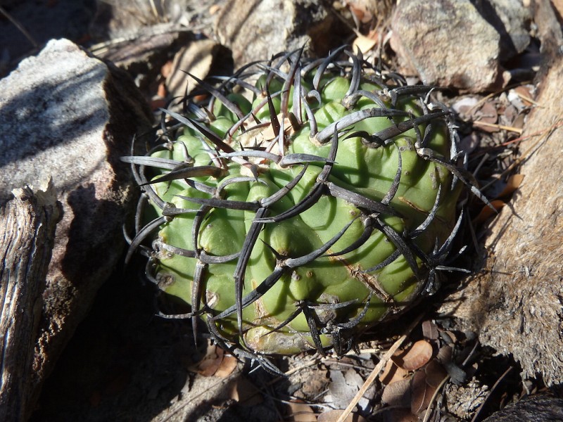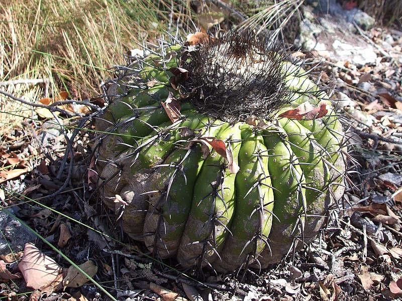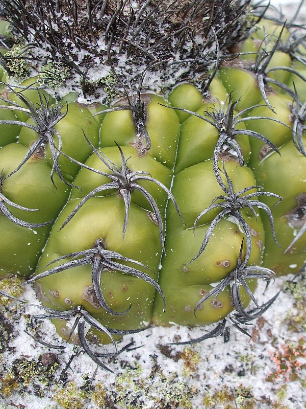 Non c’è evidenza che le coste di D. insignis / D. pseudoinsignis non possano essere tubercolate. Varie piante adulte, e non solo le più vecchie, come già notato da Buining (1980, 82), portano tubercoli ben marcati (foto 36, 45-46), inoltre la caratteristica della costa quasi dritta e regolare riportata da Taylor & Zappi (2004, 449) è piuttosto riscontrabile in individui di dimensione piccola e medio-piccola, mentre le piante medie e grandi hanno di solito la costa larga, arrotondata, a volte ondulata (foto 33, 36). Sul fatto poi che D. insignis / D. pseudoinsignis abbia costantemente 12-13 coste (Taylor & Zappi 2004, 449-450), diremmo che in media ne ha 12-15 (vedi foto). Inoltre la foto che illustra D. pseudoinsignis in Cacti of Eastern Brazil (2004, 416, tav. 73.1) mostra una pianta con 15 coste; la stessa foto illustra il taxon sul New Cactus Lexicon (Hunt et al. 2006, atlas: 290, 290.2). In ogni caso l’avere 12-13 coste (e nemmeno 12-15) non può essere considerato elemento distintivo di D. insignis / D. pseudoinsignis, in quasi tutte le popolazioni di D. placentiformis la maggior parte delle piante adulte portano quel numero di coste (vedi foto delle altre popolazioni), ad eccezione delle piante rilevate vicino a Bocaiúva, che ne hanno un numero maggiore.