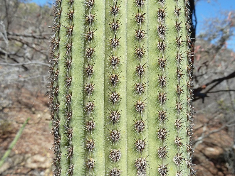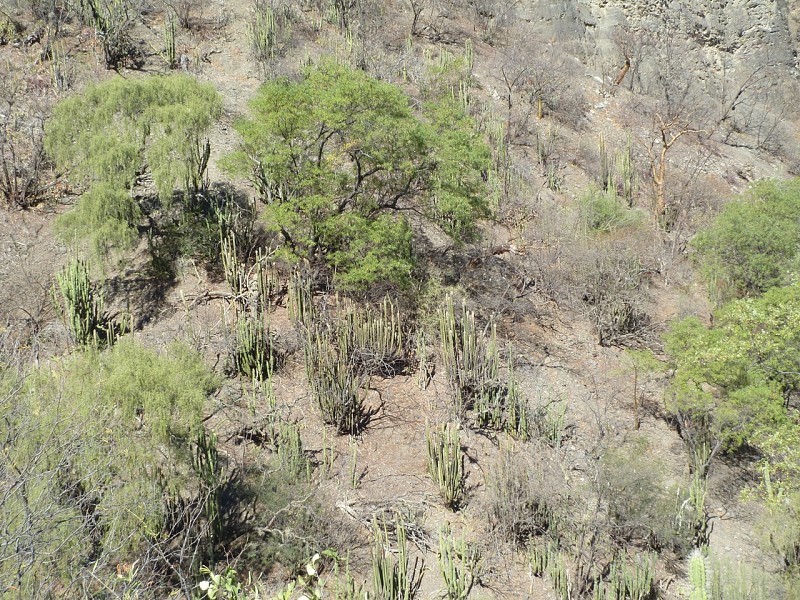 Nel luglio 2011 ci trovavamo in Bolivia nella Valle del Rio Grande, tra i dipartimenti di Santa Cruz e Chuquisaca a studiare Espostoa guentheri (Kupper) Buxbaum, per valutare quanto queste popolazioni fossero prossime, a livello olomorfologico, a Espostoa Britton & Rose, come proposto da Hunt et al., anche se sottolineando la disgiunzione di areale rispetto al resto del gruppo (2006, text: 116), piuttosto che a Vatricania Backeberg, reintrodotta da recenti studi molecolari (Lendel et al. 2006, umpubl. data in Nyffeler & Eggli 2010). All’epoca non avremmo pensato che forse la risposta giusta fosse un’altra, una terza, come emerge con evidenza da studi molecolari ancora più recenti e completi (Schlumpberger & Renner 2012). Da questi ultimi studi risulta che Espostoa e Vatricania e altri generi della tribù Trichocereeae (Anderson 2001; 2005; 2011; Hunt et al. 2006) o sottotribù Trichocereinae (Nyffeler & Eggli 2010), assieme alle specie incluse nell’attuale concetto di Echinopsis sensu lato (Anderson 2001, 2005, 2011; Hunt et. al 2006), costituirebbero un unico clade monofiletico in Echinopsis, ben supportato (100% bootstrap suport). Questo sostituirebbe l’attuale clade dimostratosi altamente polifiletico, in quanto non includente tutti i membri della linea evolutiva. Tornando alla Valle del Rio Grande, le osservazioni sulla morfologia del cefalio di tutti gli esemplari osservati di E. guentheri, hanno evidenziato che nessuno mostra il carattere che secondo Backeberg (1966, 789, fig. 444) distingue Vatricania da Espostoa, cioè il cefalio superficiale che circonda interamente la parte alta del fusto. Quello che succede all’esemplare in serra nella foto di Backeberg non si riscontra in natura. Sulle piante più adulte, nella parte apicale, il cefalio può coinvolgere qualche costa in più rispetto al centro del fusto (foto 14), ma mediamente, negli esemplari maturi, il cefalio occupa circa una metà delle coste. Per esempio nel fusto delle foto 33-34, il cefalio all’apice occupa 11 coste su 22, e scendendo verso il basso si restringe sino a occuparne 7 su 22. La distinzione tra Espostoa e Vatricania non risiede dunque nella forma o nella dimensione del cefalio. Per la definizione del taxon, preso atto dei risultati molecolari evidenziati da Nyffeler e Eggli (2010), dati rafforzati dalla disgiunzione di areale dei due generi, eravamo dell’avviso di optare per Vatricania, ma, come dicevamo, sono stati illuminanti i risultati degli studi di Schlumpberger & Renner (2012). A questo riguardo non abbiamo avuto difficoltà a interpretare Cleistocactus Lemaire, Denmoza Britton & Rose, Oreocereus (A. Berger) Riccobono, o Weberbawerocereus Backeberg come possibili Echinopsis con caratteri fiorali e/o caratteri di impollinazione modificati. Per esempio pensiamo sia evidente che Denmoza rhodacantha (Salm-Dyck)) Britton & Rose sia un perfetto anello di congiunzione tra l’attuale concetto di Echinopsis sensu lato (Anderson 2001, 2005, 2011; Hunt et. al 2006) e i generi che lo studio di Schlumpberger & Renner (2012) aggiunge affinché il genere Echinopsis possa essere realmente monofiletico (per maggiori dettagli riguardo la nostra posizione vedi cactusinhabitat booklet. South America 2011-2013 (Anceschi & Magli 2013b, 22-29). È da rimarcare che nell’ontogenesi di Echinopsis guentheri (Kupper) Anceschi & Magli sono identificabili alcune fasi giovanili (prima dell’apparizione del cefalio) (foto 6-8, 25-26) nelle quali il taxon si avvicina morfologicamente ad alcune Echinopsis andine (Trichocereus). Inoltre, arrivando a definire il taxon come una Echinopsis, la questione dell’isolamento geografico perde di significato. L’area fitogeografica di E. guentheri è costituita da una nicchia del Bioma Chaco rimasta isolata nella prima fascia andina. Ne sono una prova le cactacee che le sono simpatriche: Cereus stenogonus K. Schumann, Castellanosia caineana Cárdenas, Gymnocalycium pflanzii (Vaupel) Werdermann, Neoraimondia herzogiana (Backeberg) Buxbaum & Krainz, Echinopsis bridgesii Salm-Dyck, tutti taxa, ad esclusione di E. bridgesii, caratteristici del Chaco. Tra i cactus colonnari che popolano il Chaco, uno dei maggiori ecosistemi del continente sudamericano (di 1.000.000 di km quadrati circa), sembrava non ci fosse nessun tipo di Echinopsis, ora pensiamo che un possibile discendente dei Trichocereus andini si sia fermato a nella Valle del Rio Grande. (Tradotto da: Anceschi & Magli 2013b, 47-48)