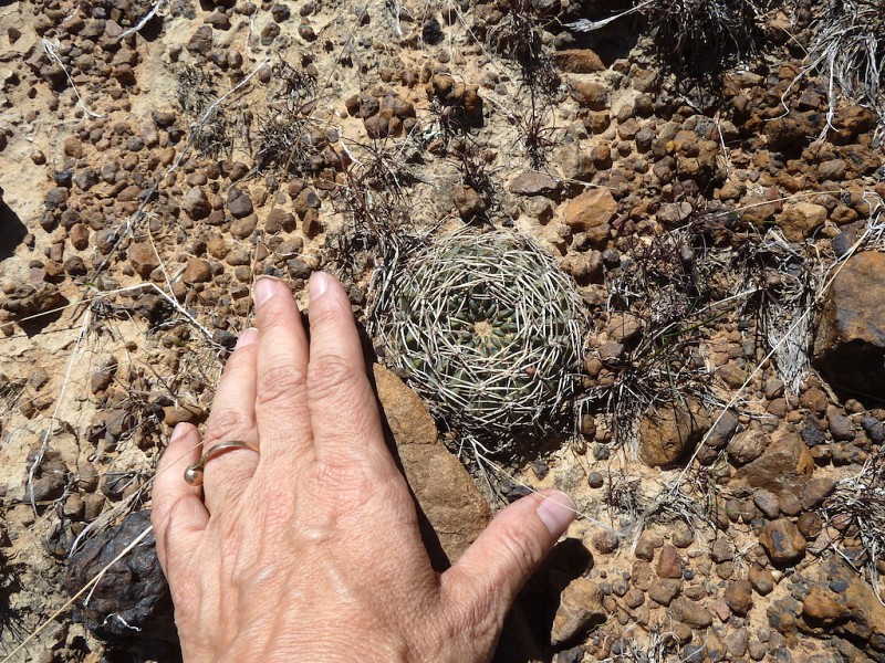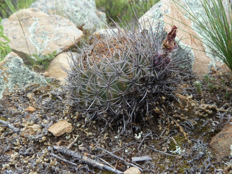 In merito alla distinzione del fiore sopra menzionata, subito dopo gli stessi autori concludono “At this place they both had red flowers [Figs.8 & 9]!” (ibidem). Le didascalie con le quali Lowry & Winberg descrivono le foto dei due taxa nel loro articolo, sottolineano ulteriormente quanto siano labili le distinzioni da loro sostenute circa una effettiva possibilità di discriminare i due taxa in habitat. Le riportiamo di seguito: “Fig. 8 Lobivia rossii, or is it just a spiny L. cinnabarina?” e ancora “Fig. 9 Lobivia cinnabarina, or is it just a flat L. rossii?” (ibidem, 43).” Infatti è difficile distinguere i due taxa, essendo L. rossii solo una forma più spinosa nel range morfologico e geografico della dominante E. cinnabarina. Come dimostreremo, individui maggiormente dotati di spine, assimilabili all’idea di L. rossii o E. pugionacantha ssp. rossii, sono riscontrabili nelle comuni popolazioni di E. cinnabarina. Si confrontino per esempio: