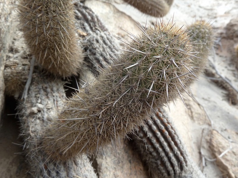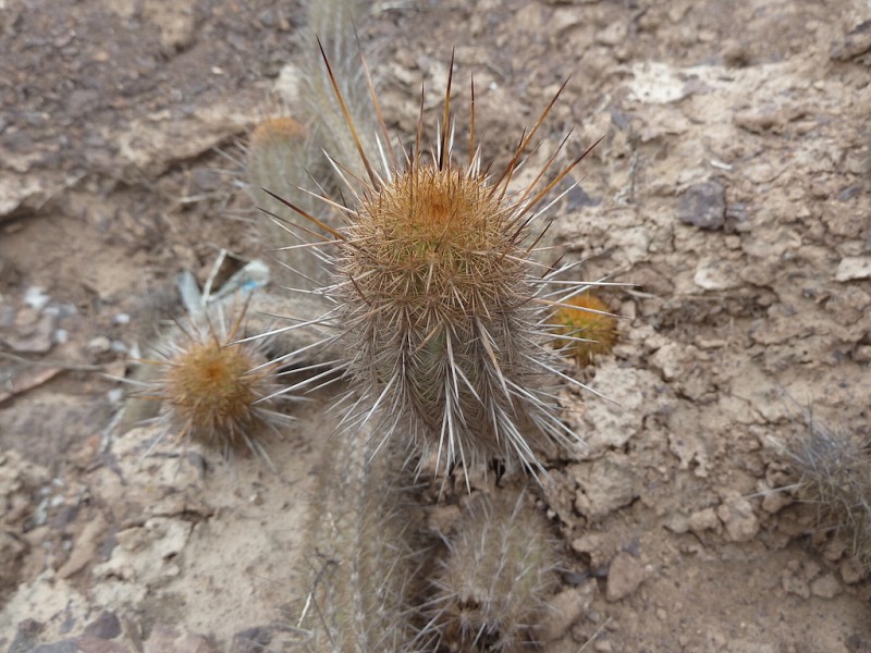 Nota: Senza poter contare né sui caratteri fiorali né sui frutti, sulla base degli altri caratteri morfologici disponibili, non è possibile distinguere Echinopsis decumbens (Vaupel) Mayta da Echinopsis sextoniana(Backeb.) Mayta. Sulla difficile distinzione tra i due taxa in questione, si veda anche Mauseth et al. (2002, 174, al riguardo di Loxanthocereus e Haageocereus) e soprattutto Ritter (1981, 4: 1472), in relazione a Loxanthocereus sextonianus e Haageocereus decumbens). Per questi motivi, i rilevamenti A&M 1139, A&M 1145, A&M 1156 e A&M 1157, portano la dicitura "Echinopsis decumbens o Echinopsis sextoniana".