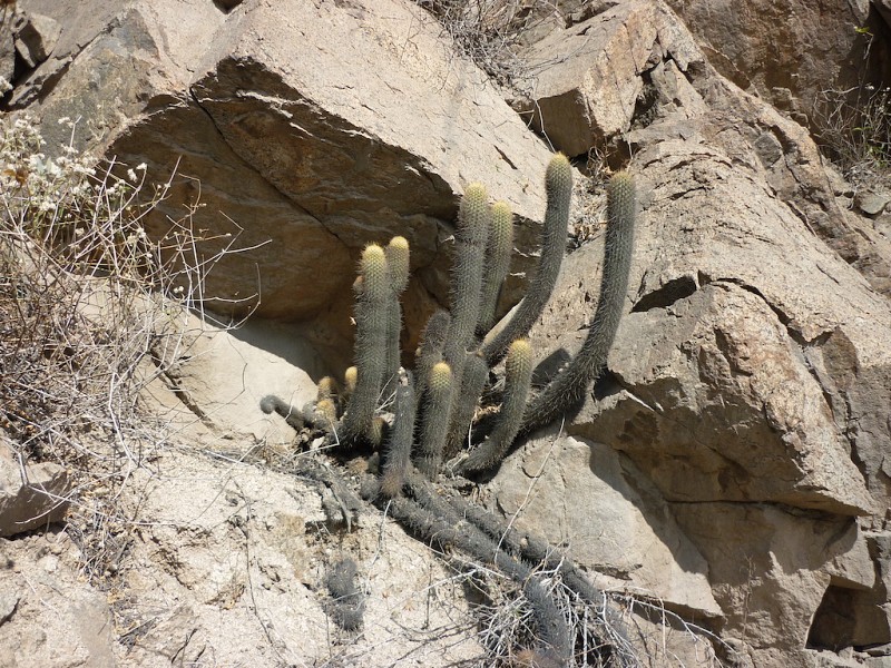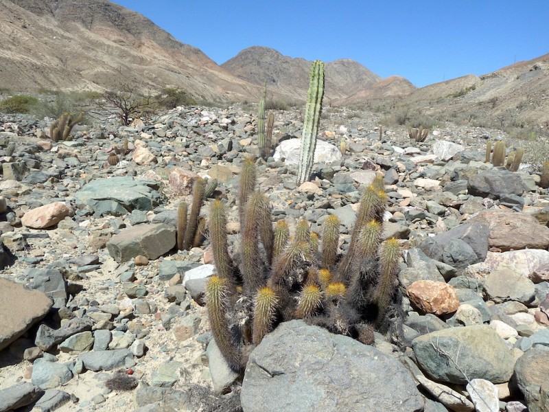 Hunt et al. (2006, text: 136), dividono Haageocereuspseudomelanostele (Werdermann & Backeberg) Backeberg in 5 ssp., riconoscendo oltre a quella del tipo le ssp. acanthocladus, aureispinus, chryseus e turbidus. Le stesse ssp. sono riconosciute anche in Anderson & Eggli (2011, 334-335), con l’esclusione della ssp. acanthocladus ritenuta sinonimo di H.pseudomelanostele, e l’aggiunta della ssp. carminiflorus, considerata sinonimo della ssp. pseudomelanostele dai primi autori (Hunt et al. 2006, text: 136). I rilevamenti da noi effettuati nel 2014, nel deserto costiero del Perù, sulle popolazioni di Echinopsis pseudomelanostele (Werdermann & Backeberg) Anceschi & Magli, nella valle di Nazca-Huallhua, corrispondenti alla ssp. turbidus, e nella valle di Lima-Matucana (Valle del Rio Rimac), corrispondenti alla ssp. pseudomelanostele, hanno evidenziato come unico elemento distintivo per le prime, spine più evidenti (più grosse e biancastre), sulla maggioranza degli individui, vedi A&M 1171, Peru, Ica, north-east of Nazca, 862 m (foto 5); anche se non mancano semaphoronts giovani (foto 8), o adulti, vedi A&M 1176, ibidem, 1147 m, (foto 41-42), portanti spine più sottili, di colore giallo oro o giallo corno, perfettamente in linea con i loro corrispondenti della Valle di Lima (Rimac Valley), vedi A&M 1218, Peru, Lima, Lima, north-east of Lima (foto 51-52, per semaphoronts adulti, e foto 55-56 per semaphoronts sia giovani che adulti). Anche le stringate descrizioni delle ssp. acanthocladus, aureispinus, e chryseus in Hunt et al. (2006, text: 136), non evidenziano nessuna differenza che sia degna di nota, rispetto alla specie tipo, se non il nome. La scarsa distinzione tra i taxa in oggetto è evidenziata anche dalle foto scelte dagli autori per rappresentarli (ibidem, atlas: 185-186). La poca distinzione è confermata anche dalla foto che identifica Haageocereus chryseus F.Ritter (la ssp. chryseus), in Ritter (1981, 4: 1520, fig. 38), sostanzialmente uguale per spinatura e colori ad un esemplare di H.pseudomelanostele. Per le ragioni sopra esposte non troviamo giustificati i taxa aggiuntivi proposti da Hunt et al. a dividere le popolazioni della dominante E. pseudomelanostele, e ritenendoli ridondanti, li consideriamo da aggiungersi alla sinonimia della specie. A precisazione della nostra concezione tassonomica di E. pseudomelanostele, notiamo che il suo sinonimo Haageocereus pseudomelanostele viene considerato da E. A. Molinari-Novoa (2015, 13: 19) tra i sinonimi di Echinopsis multiangularis (Haworth) Molinari, avente basionimo Cereus multiangularis Haworth, precedente quest’ultimo (1819) a Cereus pseudomelanostele (1931), basionimo di E. pseudomelanostele. Ricordiamo che Hunt et al. (2006, text: 136), rigettano Haageocereus multiangularis (Haworth) F. Ritter con basionimo Cereus multiangularis Haworth [non Cactus multiangularis Willd (1814), anche questo rigettato] = Haageocereuspseudomelanostele? Ricordiamo inoltre, che anche Eggli, in Anderson & Eggli (2011, 335, 668), esprime posizioni analoghe, riportando che C. multiangularis non è identificabile con certezza con H. pseudomelanostele. Sulla base di queste considerazioni, preferiamo identificare le popolazioni in oggetto col nome Echinopsis pseudomelanostele. Pur nella scelta di E. multiangularis anzichè E. pseudomelanostele, anche E. A. Molinari-Novoa (2015, 13: 19), considera gli epiteti acanthocladus, aureispinus, carminiflorus e turbidus come come sinonimi; la ssp. chryseus non è compendiata dall’autore, in quanto assente nel Dipartimento di Lima, oggetto della sua lista di aggiornamento. (Tradotto da: Anceschi & Magli 2021, 63-64)