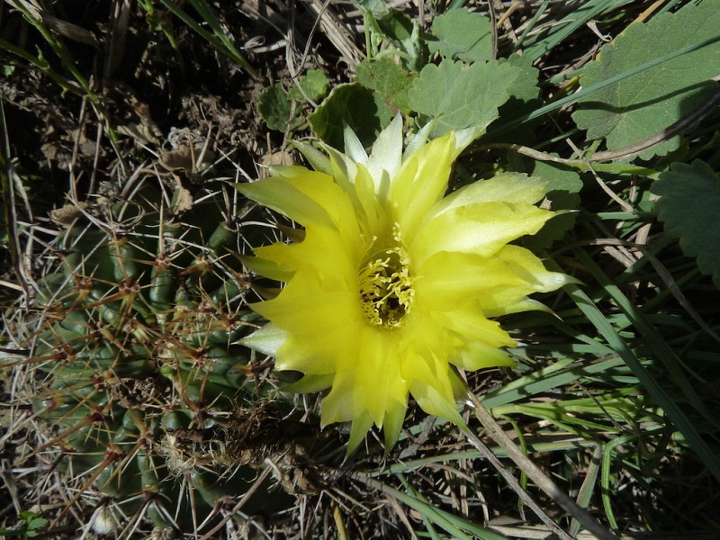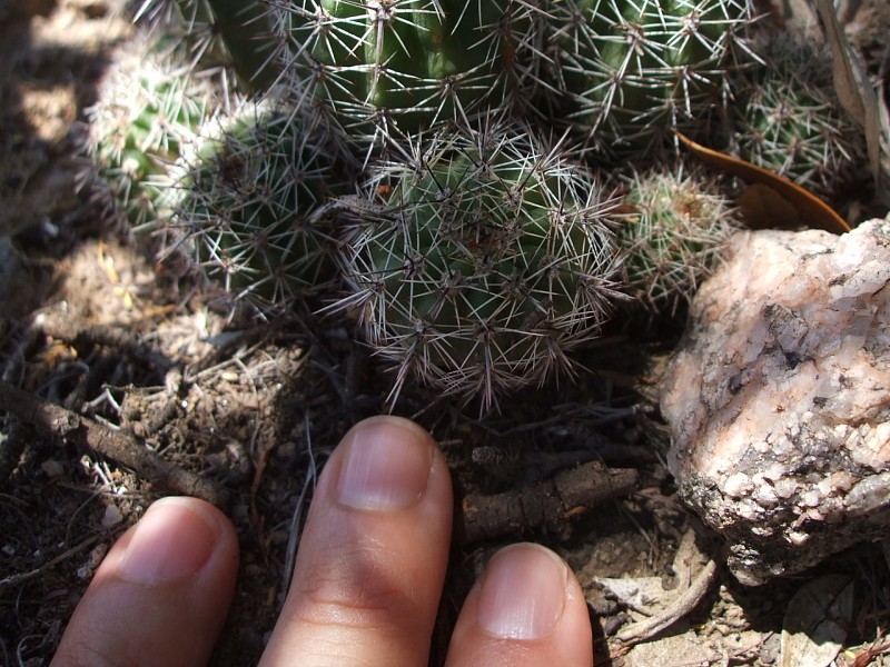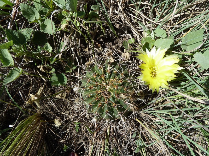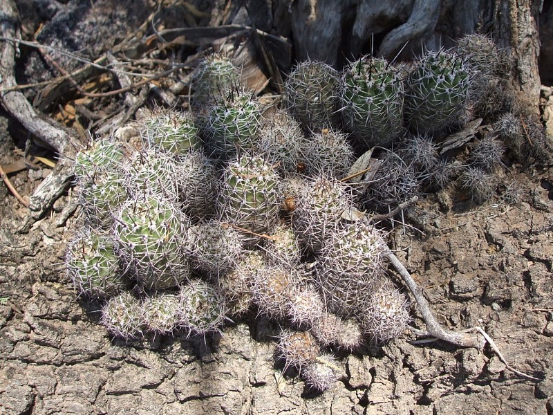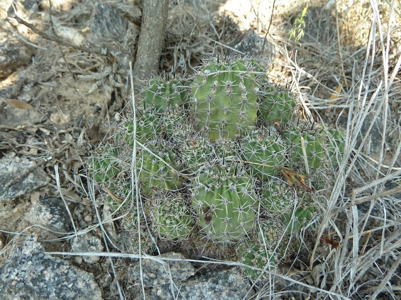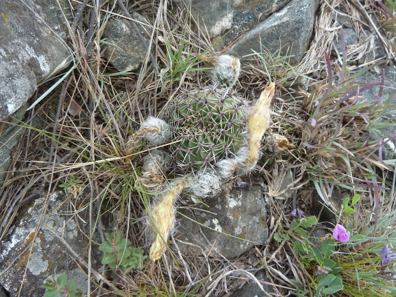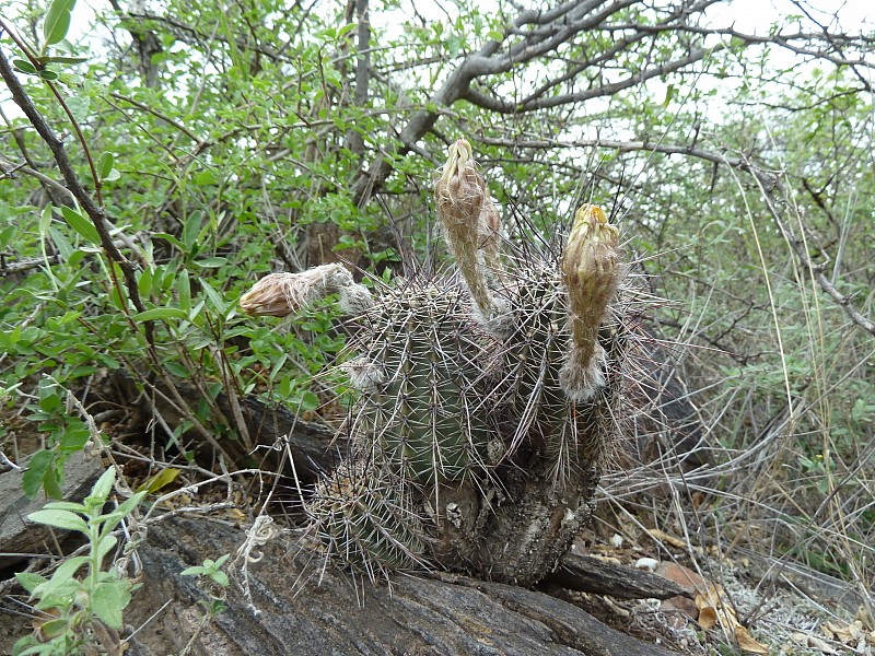 Echinopsis aurea Britton & Rose è una specie relativamente dominante diffusa in varie provincie del nord Argentina (Catamarca, Córdoba, La Rioja, Salta, San Luis, Santiago del Estero). Le popolazioni mostrano caratteri piuttosto variabili anche in seno a una stessa popolazione come evidenziato dai rilevamenti, tanto che alcuni di questi caratteri sono stati assunti come indicativi di una qualche distinzione tassonomica infrapopolazionale (var.), intrapopolazionale (ssp.), o a livello di specie. In realtà tali distinzioni vengono a cadere quando emerge che all’interno di una stessa popolazione sono riscontrabili i distinti caratteri che delimiterebbero i presunti taxa. Per esempio nel rilevamento di Córdoba, San Marco Sierra, strada per il Rio Quilpo del 19/03/2011, A&M 379, la forma più robusta, con più polloni e con più bracci (fusto maggiore cm 23 x 10,5, h x d), caratteri che dovrebbe contraddistinguere Echinopsis fallax (Oehme) H. Friedrich (foto 5-8), vive a fianco della forma classica di E. aurea (foto 13-14). Anche nel rilevamento di La Rioja, Olta, strada per il Dique de Olta, del 31/03/2011, A&M 414, si trovano sia le due forme, E. fallax (foto 15-17) e E. aurea (foto 18-19), sia forme intermedie (foto 20-24). Oltre alle forme di crescita, anche i “distinti” valori dimensionali, il numero di coste, spine, etc, che separerebbero i tre taxa, sono riscontrabili all’interno di una stessa popolazione. Per queste ragioni riteniamo che E. fallax e E. aurea ssp. shaferi siano sinonimi di E. aurea. L’idea non è nuova, in Anderson (2001, 258) si era già arrivati alle stesse conclusioni. La stessa idea è mantenuta su Das Grosse Kakteen Lexicon (2005, 2011), l’edizione tedesca del libro di Anderson, tradotta e curata (con alcune modifiche tassonomiche) da Eggli. (Tradotto da: Anceschi & Magli 2013b, 45)