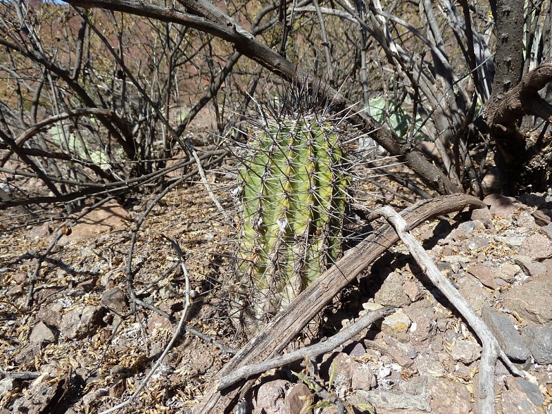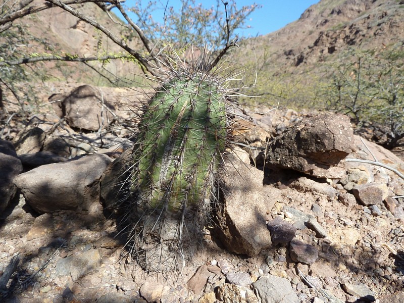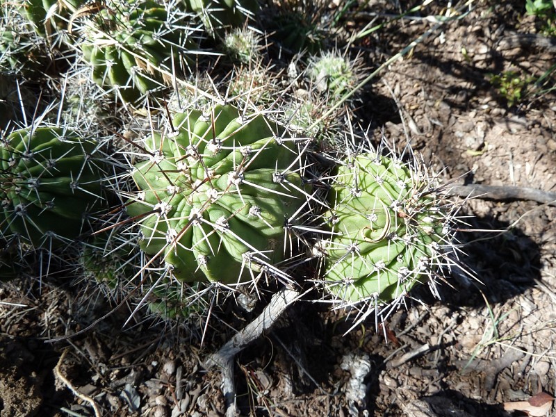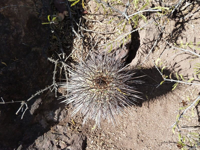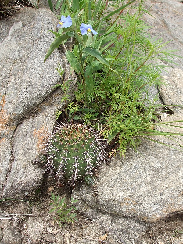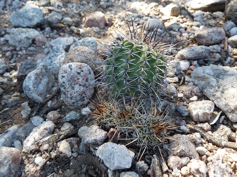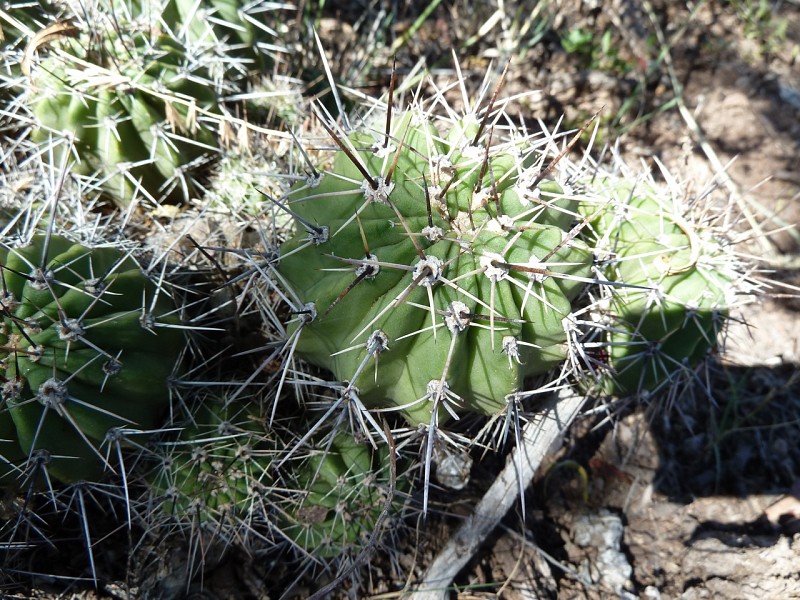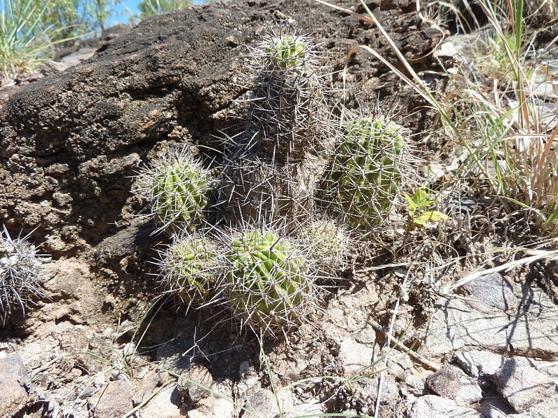 Echinopsis aurea Britton & Rose è una specie relativamente dominante diffusa in varie provincie del nord Argentina (Catamarca, Córdoba, La Rioja, Salta, San Luis, Santiago del Estero). Le popolazioni mostrano caratteri piuttosto variabili anche in seno a una stessa popolazione come evidenziato dai rilevamenti, tanto che alcuni di questi caratteri sono stati assunti come indicativi di una qualche distinzione tassonomica infrapopolazionale (var.), intrapopolazionale (ssp.), o a livello di specie. In realtà tali distinzioni vengono a cadere quando emerge che all’interno di una stessa popolazione sono riscontrabili i distinti caratteri che delimiterebbero i presunti taxa. Per esempio nel rilevamento di Córdoba, San Marco Sierra, strada per il Rio Quilpo del 19/03/2011, A&M 379, la forma più robusta, con più polloni e con più bracci (fusto maggiore cm 23 x 10,5, h x d), caratteri che dovrebbe contraddistinguere Echinopsis fallax (Oehme) H. Friedrich (foto 5-8), vive a fianco della forma classica di E. aurea (foto 13-14). Anche nel rilevamento di La Rioja, Olta, strada per il Dique de Olta, del 31/03/2011, A&M 414, si trovano sia le due forme, E. fallax (foto 15-17) e E. aurea (foto 18-19), sia forme intermedie (foto 20-24). Oltre alle forme di crescita, anche i “distinti” valori dimensionali, il numero di coste, spine, etc, che separerebbero i tre taxa, sono riscontrabili all’interno di una stessa popolazione. Per queste ragioni riteniamo che E. fallax e E. aurea ssp. shaferi siano sinonimi di E. aurea. L’idea non è nuova, in Anderson (2001, 258) si era già arrivati alle stesse conclusioni. La stessa idea è mantenuta su Das Grosse Kakteen Lexicon (2005, 2011), l’edizione tedesca del libro di Anderson, tradotta e curata (con alcune modifiche tassonomiche) da Eggli. (Tradotto da: Anceschi & Magli 2013b, 45)